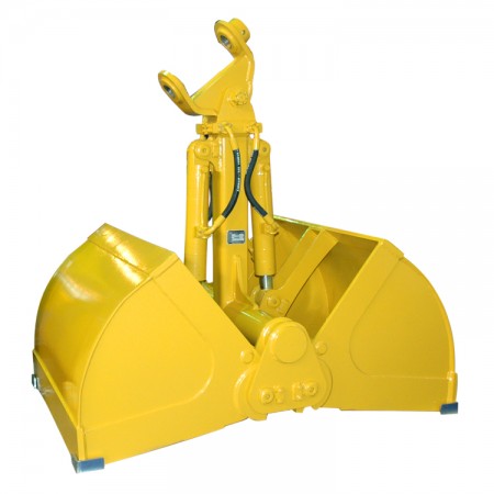 產(chǎn)品特點:配兩條油缸,通過雙液壓油缸直接開合抓斗,下挖力強(qiáng),設(shè)有同步連桿保證左右斗同步。